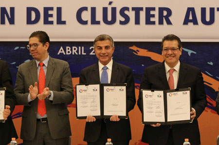 Puebla.- En el marco de la reunión Nacional de Clústers de la Industria Automotriz, el subsecretario de Comercio Exterior de la Secretaría de Economía federal, Juan Carlos Baker, el gobernador Tony Gali y su homólogo de Tlaxcala, Marco Antonio Mena, participaron en la constitución del Clúster Automotriz Puebla-Tlaxcala.