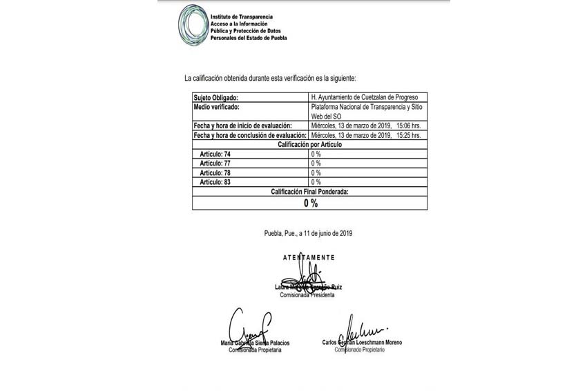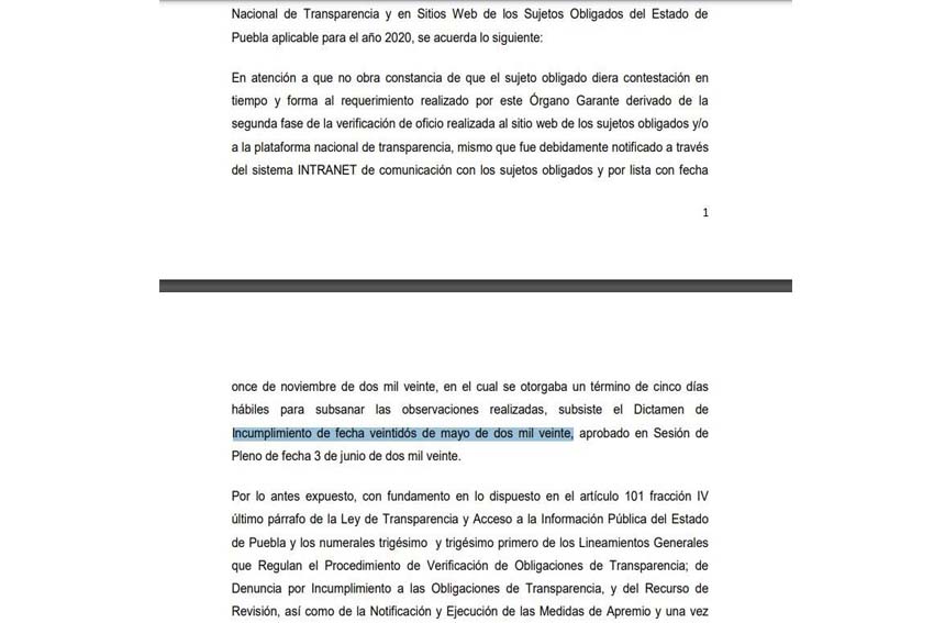 de Puebla (ITAIPUE) le hizo llegar oficios de