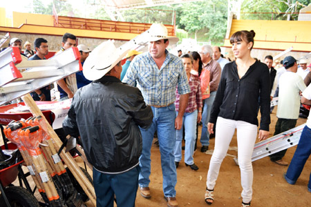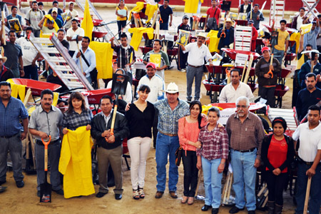 Los paquetes contienen diez carretillas para las juntas auxiliares y ocho para las comunidades, además de palas cuadradas, palas redondas, azadones, machetes, impermeables, botas, picos y una escalera, los cuales deberán utilizarse también para actividades y solicitudes de las escuelas, comités de salud y las faenas de cada comunidad.