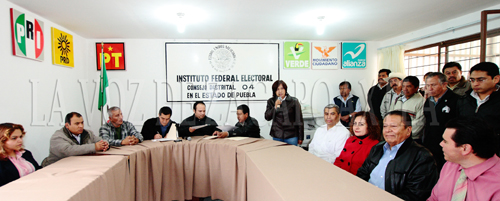 La comitiva que acudió al Consejo Distrital fue encabezada por el Lic. Abelardo Bonilla Cuevas, Representante personal del Diputado Fernando Morales Martínez, Presidente del Comité Directivo Estatal del PRI, el Lic. Javier López Zavala, Coordinador Estatal de Promoción al Voto del Lic. Enrique Peña Nieto y del Lic. Raúl González Hernández, Representante del PRI ante el Consejo Distrital 04; así como Presidentes de Comités Municipales en la región.