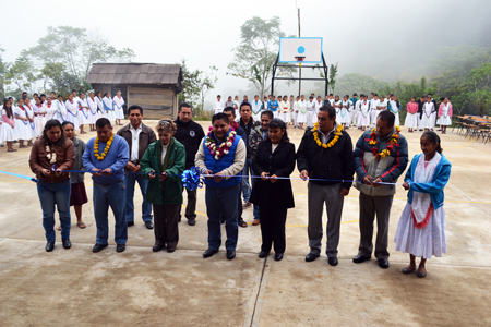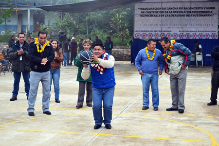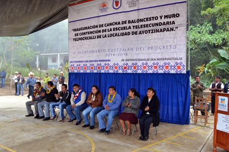 Cuetzalan.- El presidente municipal Óscar Paula Cruz, realizó la inauguración de la cancha de usos múltiples de la telesecundaria “Telpochcalli” de la comunidad de Ayotzinapan, obra que beneficiará a 91 estudiantes del plantel, en donde el ayuntamiento aportó el material y los padres de familia y pobladores, aportaron la mano de obra.