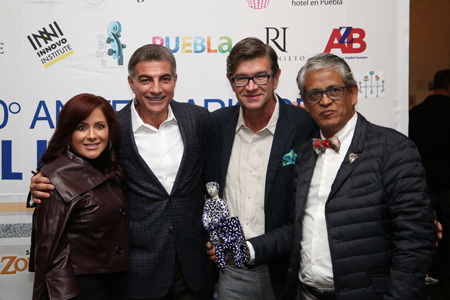 Acompañado por su esposa, Dinorah López de Gali, encabezó la celebración del décimo aniversario de la escultura "El hombre azul" del artista plástico boliviano José Bayro, a quien expresó su reconocimiento por contribuir con el arte en Puebla. José Bayro agradeció la apertura de espacios para las distintas expresiones de arte, mientras que Alejandro Cañedo, secretario de Turismo del Gobierno Municipal, destacó que dicha escultura representa un importante ícono de la cultura.