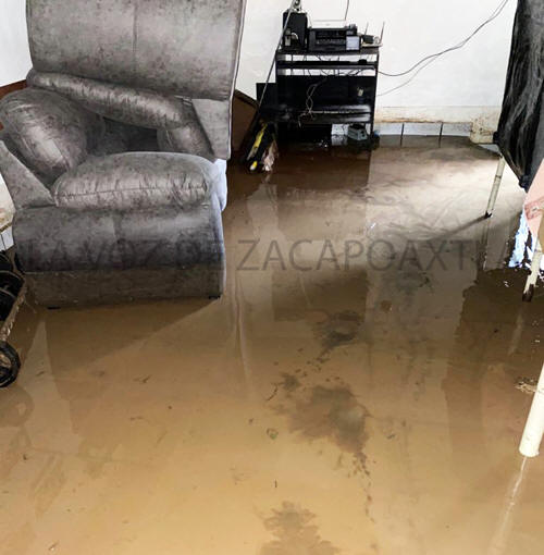 El agua se desbordó y provocó inundaciones de hasta metro y medio en dos casas de la zona, lo que los obligó a desalojar su vivienda cerca de las 4:00 horas del sábado y tras preguntar a la policía municipal si habían habilitado refugios temporales, les respondieron que se podían refugiar en el albergue del IMSS.