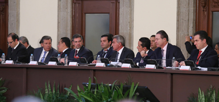 En su mensaje, el Presidente Enrique Peña Nieto enfatizó que se requiere del trabajo firme y corresponsable de los tres niveles de gobierno para consolidar corporaciones policiacas confiables que den respuesta a la demanda de los ciudadanos en materia de seguridad. “Desde este espacio hago un respetuoso llamado a los gobernadores para seguir fortaleciendo las capacidades institucionales en el combate a la delincuencia, México necesita policías locales bien capacitadas y equipadas, sólidas y eficaces que garanticen la seguridad de la población, sólo trabajando juntos con compromiso, perseverancia y visión de largo plazo, alcanzaremos el México en paz que todos anhelamos”, resaltó. En su intervención, Tony Gali destacó que en este encuentro se avanzó en la actualización del modelo y proceso de control de confianza para los integrantes de las instituciones de Seguridad Pública y se analizó el impulso a la profesionalización de los elementos.