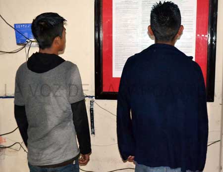 Zacapoaxtla.- Por el delito de portación ilegal de arma de fuego y por escandalizar en la vía pública, fueron detenidos por la policía municipal, dos sujetos en la comunidad de San Juan Tahitic, quienes fueron puestos a disposición del ministerio público federal en la ciudad de Puebla.