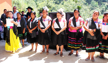 Julia Arcenia Juárez García, directora de este plantel en compañía de mujeres del comité de padres de familia, recibieron a las autoridades con un ritual propio de la cultura de esta comunidad de origen náhuatl, con la música del Xochipitzahuatl, coronas de flores e incienso. El Presidente en primer término reconoció la labor de la directora, por su compromiso con la educación y el trabajo que ha realizado al frente de este Bachillerato, además de que felicitó a las madres de familia por conservar las tradiciones propias de esta región.