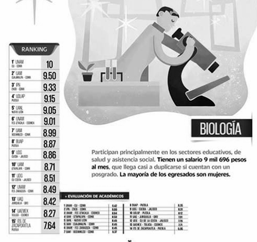 La carrera de Licenciatura en Biología ocupó para este 2018 el lugar número 15 en el ranking y al respecto la coordinadora de la carretera Rosario Aidé García Pérez, comentó que a nivel nacional la carrera la ofertan más de 60 instituciones de educación superior y el lugar que ocupó el Tec Zacapoaxtla es una muestra del buen nivel académico de la institución.