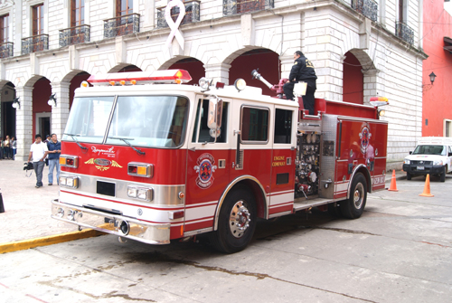 Al medio día, la unidad arribó al zócalo y a un costado del Kiosco, el Presidente Armando Sánchez Jiménez, informó que el ayuntamiento destinó 462 mil pesos del ramo 33 para la adquisición del camión y los permisos correspondientes para traerlo desde la Unión Americana. De nuevo, el edil agradeció a los ciudadanos que ayudaron durante el incendio que afectó seis comercios el pasado uno de Octubre y envió su solidaridad con las familias que resultaron afectadas, y aseguró que con el camión y el personal capacitado, la gente no se verá en la necesidad de arriesgar sus vidas durante un siniestro como el que se presentó.