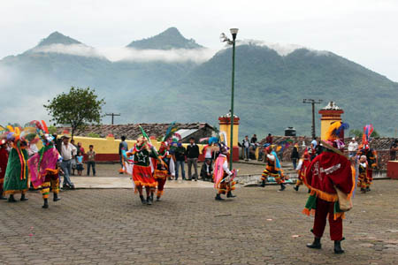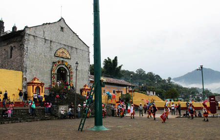 el atrio de la iglesia danzas como Los Santiagos y Voladores,