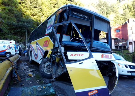 Choque de autobús deja tres lesionados en Teziutlán 24 Octubre 2016