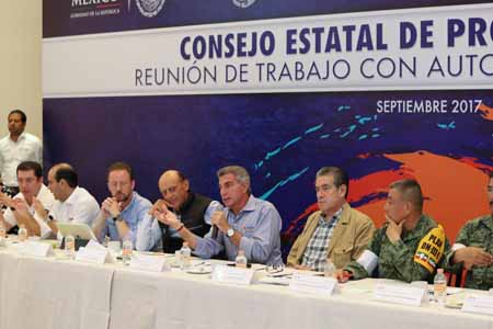Previamente, el Ejecutivo encabezó la sesión del Consejo Estatal de Protección Civil, donde se reunió con alcaldes de los 112 municipios afectados por el sismo, a quienes reiteró que será prioridad la atención de sus comunidades.