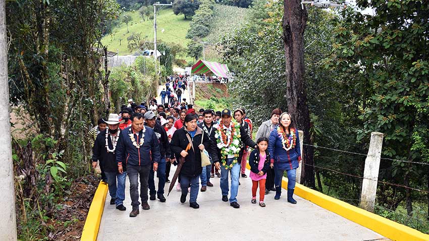 Zacapoaxtla.- Durante este viernes 23 de septiembre, el Presidente de Zacapoaxtla, Evelio Navarro Lara inició una obra en la Junta Auxiliar de Ahuacatlán, una más en la comunidad de San Juan Tahitic y finalmente inauguró una pavimentación en la colonia Rancho Bonito, perteneciente a la Junta Auxiliar de Xalacapan.