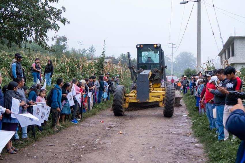 En San Juan Tahitic, el Presidente informó que se pavimentarán más de 300 metros con concreto hidráulico de la calle Xochiateno, obra que mejorará el acceso a las familias de la zona y a los turistas que asisten a la Cascada de Los Enamorados.