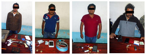 De los cuatro sujetos, dos son originarios del municipio de Teteles de Ávila Castillo, Mario Alberto “N.” de 35 años de edad y Luis Huerta “N.” de 28 años, y los otros dos son del municipio de Teziutlán Luis Gerardo “N” de 22 años de edad y Andrés Nicolás “N.” de 26 años de edad. Luego de que fueron asegurados, fueron trasladados a la ciudad de Puebla, donde se pondrán a disposición de la Procuraduría General de la República (PGR) por el delito de portación ilegal de arma de fuego de uso exclusivo del ejército.