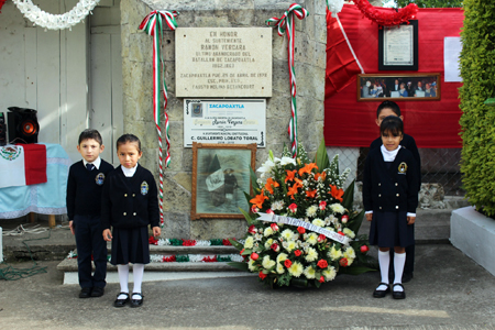 Zacapoaxtla.- Durante los días 25 y 26 de Abril, instituciones educativas, autoridades y ciudadanos rindieron homenaje en la cabecera municipal y comunidades a los Héroes originarios de este municipio, los cuales participaron en la defensa del territorio nacional durante la Intervención Francesa de 1862 a 1867.