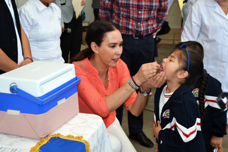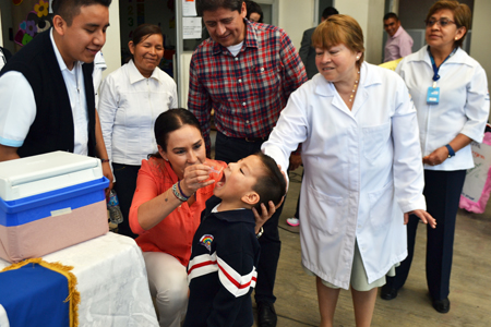 Zacapoaxtla.- Con la meta de vacunar a un total de 495 niños de la cabecera municipal de Zacapoaxtla, fue inaugurada este 27 de febrero la primera semana nacional de vacunación, en donde se aplicará la dosis oral bivalente contra la poliomielitis a niños de seis a 59 meses de edad y se completarán esquemas básicos.