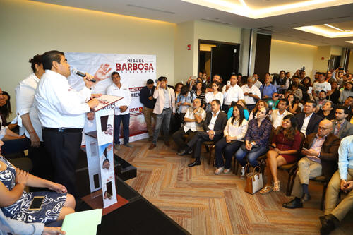 El abanderado de Morena, PT y PVEM reiteró que este segmento no puede estar ausente de ningún programa de gobierno, ya que resulta impensable que quien llegue al ejercicio del poder no tenga una visión de lo que debe ser el desarrollo de Puebla para generar progreso. “Yo a ustedes les propongo concretamente la creación de la Subsecretaría de Emprendimiento e Innovación, quién sea su titular será producto del diálogo que tenga con ustedes”, dijo Barbosa Huerta en encuentro de campaña con integrantes de este sector productivo. El candidato de la Coalición Juntos Haremos Historia añadió que de esta forma la administración que encabece tendrá una mentalidad clara sobre los apoyos concretos que requieren los emprendedores.