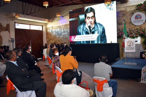 Tlatlauquitepec.- El Gobernador del Estado, Luis Miguel Barbosa Huerta, participó de manera virtual en el Segundo Informe de Gobierno de la Administración Municipal de Tlatlauquitepec, que encabeza el Presidente Porfirio Loeza Aguilar.
