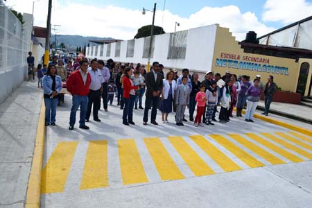 El alcalde señaló que esta avenida se encontraba adoquinada, pero este material solo tiene cierto periodo de vida útil, es por ello que fue necesario cambiar el adoquín por el pavimento, obra que beneficiara de manera directa a docentes, alumnos y padres de familia que a diario acuden a la escuela primaria Miguel Ávila Camacho y a la escuela Secundaria Netzahualcóyotl.