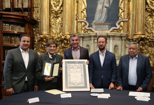 27 Septiembre 2018 Puebla.- El gobernador Tony Gali entregó la Clavis Palafoxiana al dramaturgo Manuel Reigadas Huergo, por su destacada trayectoria y valiosas aportaciones a la vida teatral del estado y del país. Al encabezar el homenaje que se realizó en su honor, el mandatario detalló que el actor, productor y director ha posicionado a la entidad en la escena nacional e internacional, debido a que sus obras han trascendido barreras, llegando a Estados Unidos y Francia. Resaltó su impulso a la promoción de nuevos talentos poblanos y dijo que este tributo se debe a su labor artística, pasión y entrega, que lo convierten en un ejemplo de perseverancia y amor al arte. Manuel Reigadas Huergo agradeció la distinción y mencionó que la recibe a nombre de la comunidad teatral de Puebla, así como de todos aquellos que lo acompañaron y con los que ha compartido escenario a lo largo de su carrera. El alcalde de Puebla, Luis Banck, reconoció a Manuel Reigadas por ser un poblano de corazón que ha llevado a cabo acciones en beneficio de la ciudad. Además, enfatizó que con trabajo y dedicación convirtió su talento en virtud y ayudó a otros a descubrir su vocación. En el acto estuvieron presentes el Secretario de Cultura y Turismo, Roberto Trauwitz y el Subsecretario de Cultura del estado, Moisés Rosas Silva, así como familiares y alumnos del homenajeado.