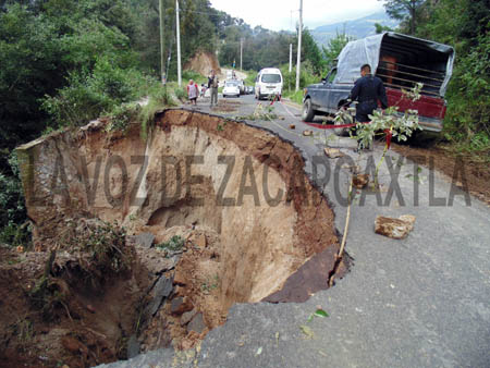 Hundimiento obliga al cierre de la Zacapoaxtla - Tlatlauquitepec