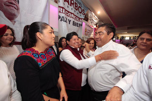 Acompañado de su esposa Rosario Orozco y de su hija, de quien aseguró, será una aliada y consejera en temas de género; Miguel Barbosa remarcó durante su intervención, en este encuentro al que asistieron más de cinco mil mujeres provenientes de diversos municipios, que desde Morena se ha propiciado el apoyo y el impulso a las mujeres, y puso como ejemplo su compromiso de proponer un gobierno paritario donde las mujeres ocupen un 50 por ciento de posiciones gubernamentales.