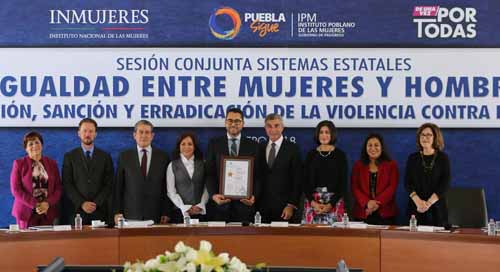 La Directora General del Instituto Poblano de las Mujeres, Nadia Navarro, agradeció la visita de INMUJERES, ya que permite lograr el cumplimiento de acciones estratégicas pero, sobre todo, garantizar el cumplimiento de metas y resultados efectivos. El alcalde Luis Banck refrendó el compromiso del gobierno de la ciudad para seguir implementando iniciativas en materia de salud, seguridad, trabajo, así como de reeducación a los hombres para beneficiar las condiciones de vida de las mujeres. Por parte del Sistema de Igualdad, recibieron Certificados de la Norma Mexicana en Igualdad Laboral y No Discriminación los titulares de la Secretaría de Educación Pública, Patricia Vázquez; de Infraestructura, Movilidad y Transportes, Xabier Albizuri; de Transparencia y Gobierno Abierto, Josefina Buxadé; la Directora General del Colegio de Estudios Científicos y Tecnológicos del Estado, Miriam Mozo y, en representación de la Secretaría de Salud, el Director de Operación de Personal, Alejandro Meneses. Estuvieron presentes el Magistrado Presidente del Tribunal Superior de Justicia, Héctor Sánchez; el Fiscal General del Estado, Víctor Carrancá; la Presidenta de la Comisión de Igualdad de Género del Congreso del Estado, Silvia Tanús; el Secretario de Seguridad Pública, Jesús Morales; la Directora General de Institucionalización de la Perspectiva de Género del INMUJERES, María de la Paz López; el Director Regional Centro-Sur del Instituto Nacional de Estadística y Geografía (INEGI), Miguel Ángel Vizconde; entre otros invitados.