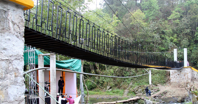Zacapoaxtla.- La tarde de este viernes 27 de marzo, a pesar de la intensa lluvia que se registró, el Presidente Municipal inauguró el puente colgante en la primera sección de la comunidad de Xilita, obra que beneficia de manera directa a cerca de 100 personas que cruzan por este lugar y tuvo un costo de 575 mil pesos de ramo 33.