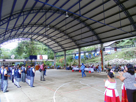 En primera instancia, el alcalde en compañía de la directora, padres de familia y el supervisor de telesecundarias federales Guillermo Lara Olivares, cortó el listón y develó la placa, minutos más tarde, los estudiantes y personal docente ofreció un programa social para agradecer la construcción de este techado, el cual se dijo que se había gestionado desde hace más de 15 años