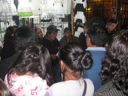 Comerciantes como Natalia Ramírez indicaron que el grupo de artesanos que agrupa a 50 socios, tampoco están dispuestos a atrás del edificio que ocupa la casa de cultura, el auditorio municipal o donde inicialmente estaba instalada la plaza del taco, tras señalar que en estos lugares no se registran ventas. Ante el incumplimiento de las autoridades y el temor de que los uniformados por la noche levanten los puestos de artesanías, los propietarios solicitaron la intervención de MIOCUP y decidieron pernoctar en el parque para cuidar sus mercancías.