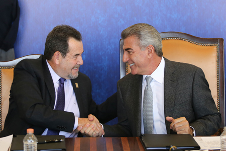 Como parte de estas acciones, el mandatario firmó un convenio de colaboración con el Presidente de la Cámara Nacional de la Industria del Vestido (Canaive), Samuel Gershevich, para la elaboración de las prendas.