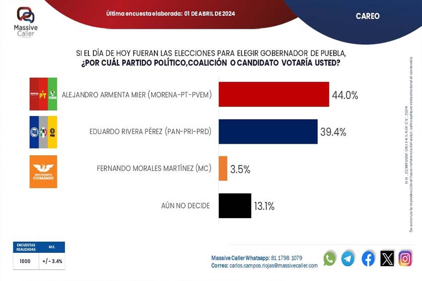 Puebla.- La empresa encuestadora Massive Caller