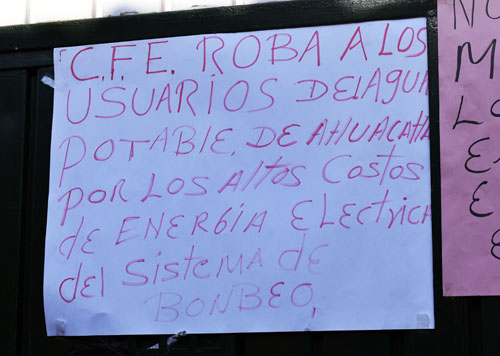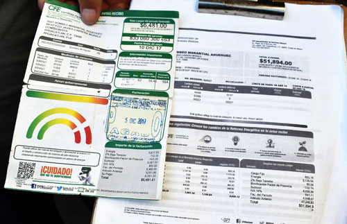 En las afueras de las oficinas ubicadas en la calle 16 de septiembre norte, mostraron recibos de meses anteriores y dijeron que los pagos eran de un promedio de 6 mil pesos, inclusive el de fecha 10 de diciembre de 2017 fue de 6 mil 481 pesos por concepto del bombeo del manantial denominado Ahuehuec y tiene como responsable al señor Francisco Javier Cabrera Morales. Los ciudadanos explicaron que los pagos por el bombeo si se habían incrementado en algunas ocasiones, sin embargo para enero de 2018, el recibo llegó de 47 mil 246 pesos, por lo que integrantes del comité de trasladaron a las oficinas de la CFE en la ciudad de Teziutlán, en donde les informaron que no se podía hacer nada y se debía liquidar el pago.