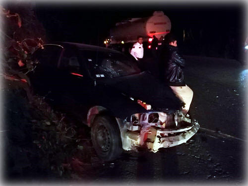 Zacapoaxtla.- Dos menores de edad resultaron lesionados, como saldo el choque entre un vehículo particular y un camión tipo tórton, el cual transportaba un contenedor con capacidad para 20 mil litros de combustible.