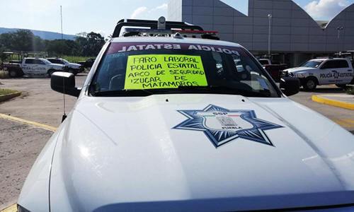 Policías estatales de los municipios de  Esperanza, Teziutlán e Izúcar de Matamoros se sumaron al paro laboral en demanda de mejores condiciones de trabajo y exhibieron sus solicitudes en  cartulinas y en los parabrisas  de sus unidades. (e-consulta).