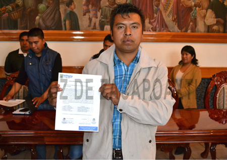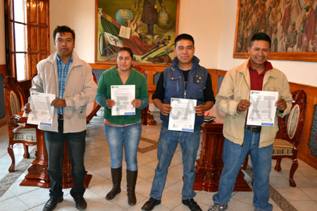 A las 9:00 horas se inició la sesión y en el salón de cabildos del palacio municipal, la presidenta de la comisión y regidora de gobernación, Nayeli Vázquez Martínez, entregó las constancias a cuatro de los ganadores que fueron Leobardo Ramiro Inés de Xalacapan, Marithé Cortés Calderón de Las Lomas, Israel flores Castillo de Tatoxcac y Miguel Flores Martínez de la junyta auxiliar de Comaltepec.
