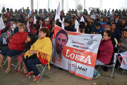 Tlatlauquitepec.- El candidato a la Presidencia Municipal de Tlatlauquitepec, Porfirio Loeza Aguilar, inició campaña con un recorrido en la comunidad de Tatauzoquico, más tarde se reunió con pobladores de las juntas auxiliares de Xonocuautla, Ocotlán y Oyameles y cerró el primer día de campaña en la cabecera municipal.