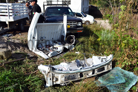 A través de una llamada anónima a la comandancia de la policía municipal a las 9:00 horas, se denunció que sujetos desvalijaban autos de procedencia ilícita en la junta auxiliar de Xalacapan, en el camino que conduce a la colonia Revolución, por lo que elementos se trasladaron al lugar.