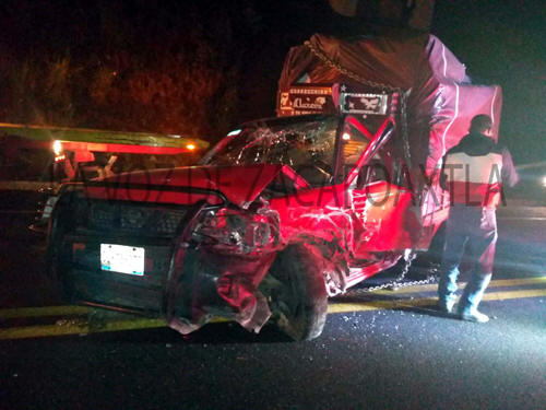 Oficiales de vialidad estatal región Tlatlauquitepec, tomaron conocimiento del accidente entre una camioneta de la marca Nissan, tipo NP300, tipo estacas, color rojo conducida por el señor Sergio Nicolás "N." de ocupación comerciante y con domicilio en el barrio de Chignaulingo de la ciudad de Teziutlán. El segundo vehículo involucrado, era de la marca Chevrolet, línea Matiz, color azul, con placas del estado de México, de este auto resultaron dos personas lesionadas, que responden con los nombres de Isaías Huerta y su esposa Octavia Hidalgo ambos con domicilio en el estado de México, siendo estos atendidos y trasladados al hospital General de Tlatlauquitepec. De acuerdo a lo relatado por las autoridades de vialidad estatal, la Nissan estacas circulaba con sentido a la ciudad de Teziutlán, sin embargo el estado etílico en el que conducía el teziuteco, provocó que invadiera el carril contrario de circulación hasta impactar al Matiz. El responsable quedó a disposición de vialidad estatal, mientras que los ocupantes del vehículo afectado quedaron internados bajo supervisión médica debido a que su estado de salud es delicado.