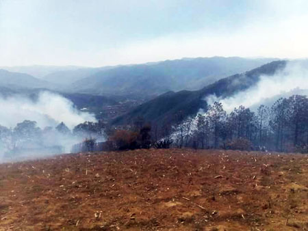Familias desalojadas, un lesionado y 20 intoxicados por incendio en Zautla 3 Abril 2017