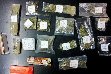 El reporte policiaco indicó que a través de una llamada telefónica a la comandancia, se solicitó la presencia de seguridad pública en el acceso a Insurgentes, porque se encontraban jóvenes consumiendo estupefacientes, por lo que se procedió a realizar un recorrido en la zona y se encontró a un grupo de cinco jóvenes, dos de ellos en posesión de doce sobres con hierba verde y papeles para la elaboración de cigarrillos.