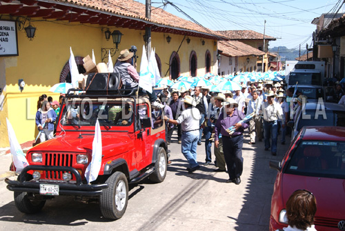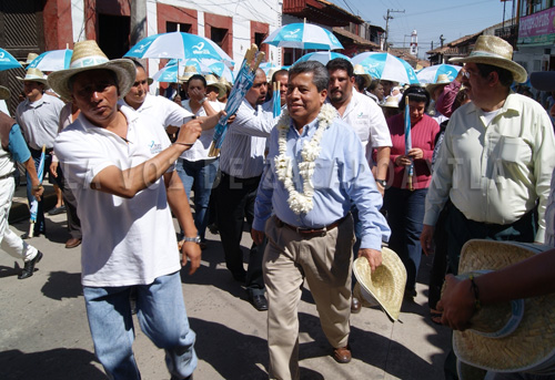 Zacapoaxtla.- La mañana del martes 3 de abril, el profesor Hugo Alejo Domínguez arrancó de manera oficial su campaña con una caminata que inició en el puente de La Cortadura y que culminó en el Centro de Convenciones de esta ciudad, evento en el que estuvo acompañado por los candidatos al senado por el Partido Nueva Alianza, Víctor Hugo Islas y Enoé González Cabrera.