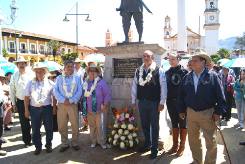 Cerca de las 11 y media de la mañana, los candidatos colocaron una ofrenda floral e hicieron guardia en el monumento dedicado el valor del Indio Zacapoaxtla en el zócalo y en el centro de convenciones, Alejo Domínguez inició su discurso con la petición de un aplauso para el Gobernador Rafael Moreno Valle Rosas.