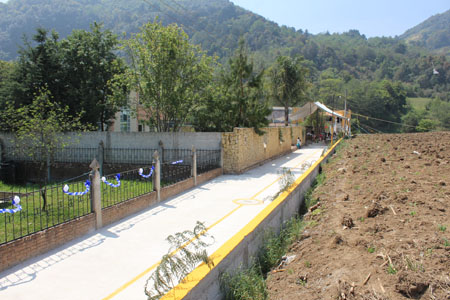 El ayuntamiento aportó 12 toneladas de cemento, 5 rollos de malla, 20 viajes de base, además de la pintura para las guarniciones y los postes, lo que en total sumaron 90 mil 254 pesos de material, pero fueron los habitantes quienes aportaron la mano de obra.