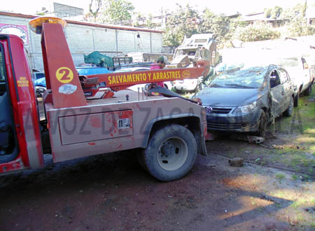 La unidad fue enganchada por una grúa y trasladada al corralón ubicado en la Colonia de Tlalconteno al norte de la ciudad, en donde permanecerá, hasta que sea reclamada por los propietarios. En el tablero solamente se localizó una póliza de un seguro que venció en septiembre del año pasado a nombre de Rigoberto Mora Vázquez, con dirección Camino a la Voluntad número 83, Colonia Campestre Aragón, Delegación Gustavo A. Madero, del DF.