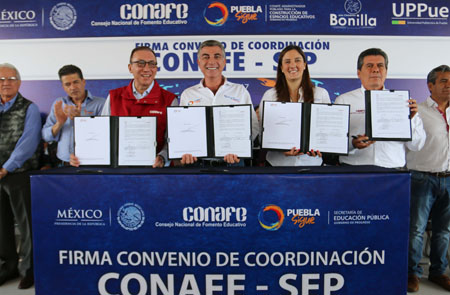 El titular del Conafe reconoció el compromiso de Tony Gali para sumar esfuerzos con la federación y reiteró que mantendrá estos lazos de cooperación en pro del desarrollo de las comunidades más necesitadas. Destacó que se cuenta con un modelo educativo paralelo al del gobierno de la República, donde la enseñanza se centra en la colaboración y el diálogo, a través del esquema "aprender para aprender". Tony Gali mencionó que con esta firma se establecen las bases para ejecutar programas, brindar asesoría pedagógica y entregar útiles escolares en beneficio de más de 480 mil alumnos de primaria y telesecundaria. Subrayó que la capacitación docente es fundamental y reiteró que el Instituto de Profesionalización del Magisterio Poblano será inaugurado próximamente para que las y los maestros accedan a contenidos de primer nivel.