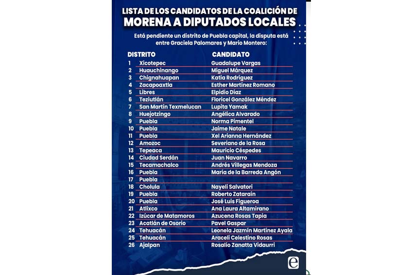 • Está pendiente un distrito de Puebla capital, la disputa está entre Graciela Palomares y Mario Montero