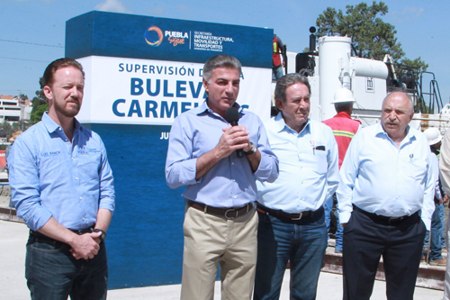 Puebla. - El gobernador Tony Gali y el alcalde Luis Banck supervisaron los trabajos de construcción de los 5.5 kilómetros del bulevar Carmelitas, que registra un avance superior al 50 por ciento y beneficiará a un millón 500 mil habitantes del sur de la capital.