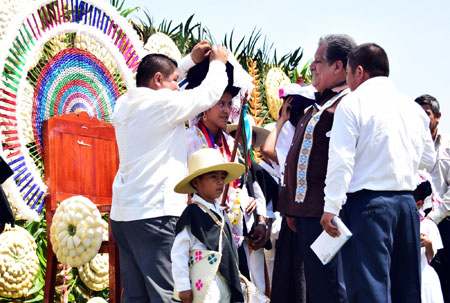 Tras haber llevado a cabo un recorrido acompañada por danzas autóctonas al llegar nuevamente al atrio de la parroquia se procedió a la coronación de la Reina del Huipil, la cual estuvo a cargo del presidente municipal Oscar Paula Cruz y del diputado local Cupertino Alejo Domínguez, para dar paso a la presentación de cerca de 30 grupos de danzantes, quienes ofrecieron su canto y baile al santo patrón, San Francisco de Asís.