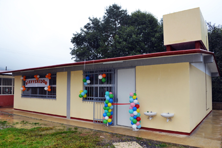 pesos para el programa de vivienda Luego del evento en el auditorio de la comunidad, las autoridades se trasladaron a la Primaria, en donde el alcalde y la Presidenta del DIF acompañados de una alumna, realizaron el corte del edificio del desayunador escolar, el cual fue entregado con mobiliario, refrigerador, estufa, además de lavabos para el lavado de las manos de los estudiantes. El Presidente informó que en este desayunador escolar se invirtió 1 millón 72 mil pesos, el cual los docentes dijeron que será de gran ayuda para los pequeños de esta primaria que contarán con un espacio digno para tomar sus alimentos. Finalmente el alcalde felicitó a los 18 ciudadanos que se inscribieron en el programa de árboles frutales y a los 27 campesinos que participaron en el programa de fertilizante e invitó al resto de ciudadanos a que recuperen la actividad agrícola para beneficio de sus familias.